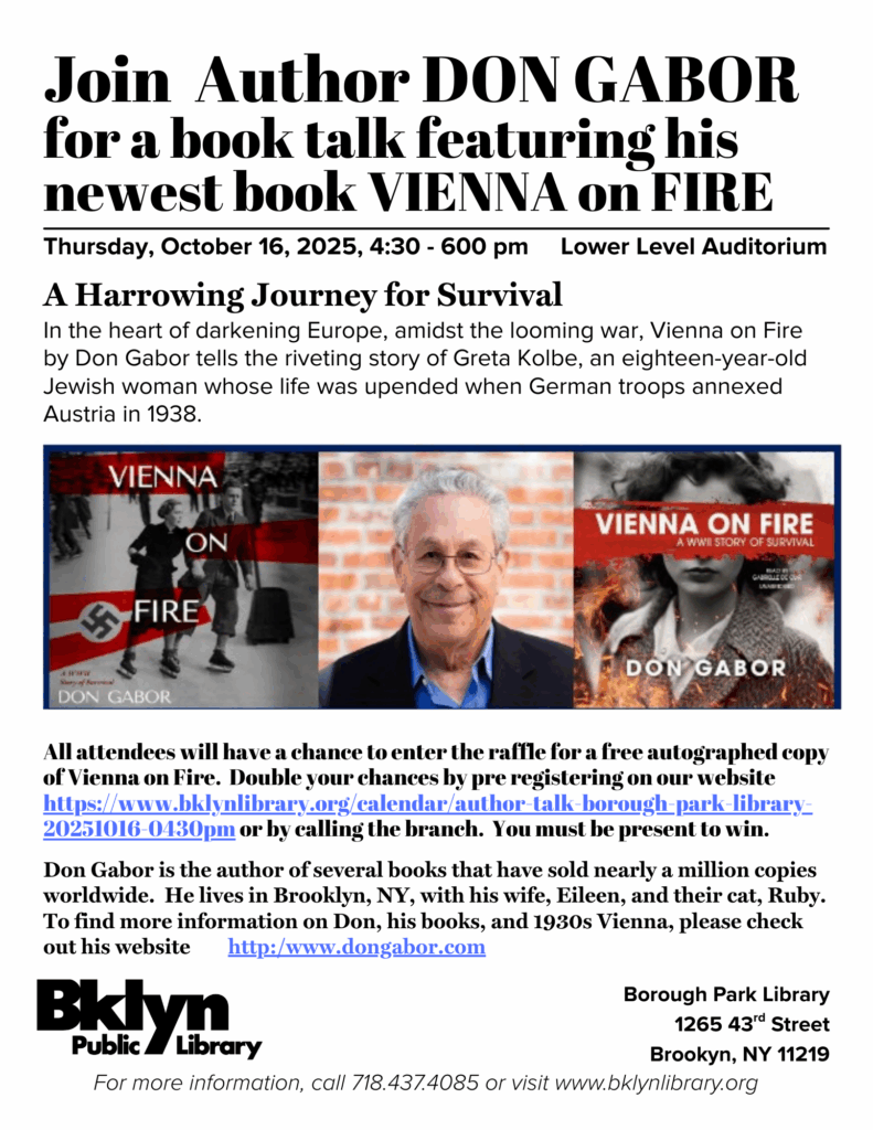 October 16, 2025Borough Park Library1265 43rd StBrooklyn, NYAuthor Book Talk